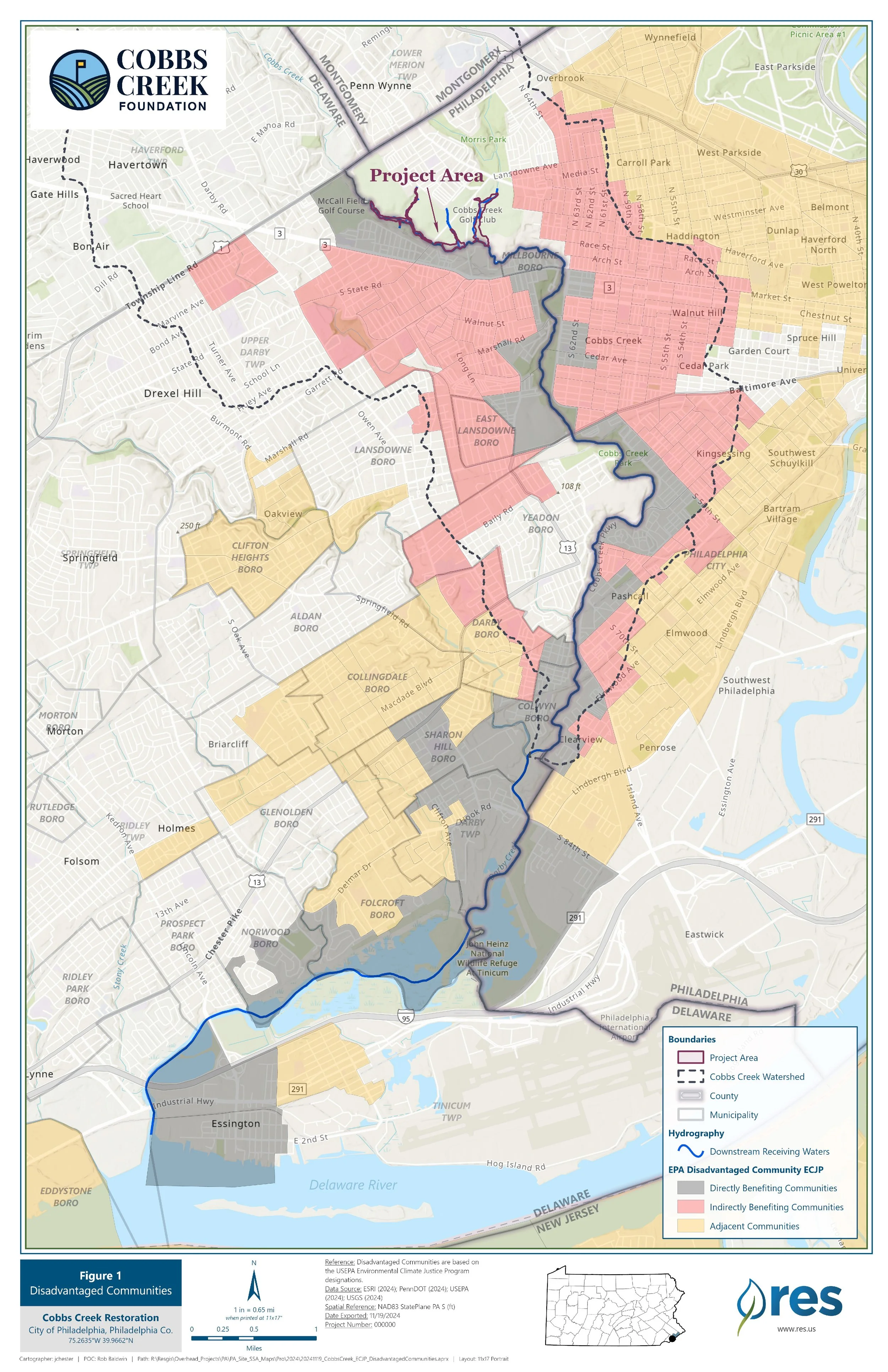 To undertake and complete the largest ever urban creek restoration, spanning three miles, we will excavate 215,680 cubic yards of contaminated legacy sediment and permanently remove 133,680 cubic yards. In this way, we can re-establish natural hydrologic function, while mitigating historic flooding and channel degradation. We are also addressing major public health challenges for more than 200,000 individuals in the Philadelphia area by directly managing discharges from 28 Combined Sewage Overflows (CSOs) and a former Superfund site. Our work will also enhance 1.2 acres of existing wetlands, primarily by planting native species and removing invasive species, and we will establish 23.94 acres of new wetlands, making the Cobbs Creek Campus one of the most biodiverse areas in our region.